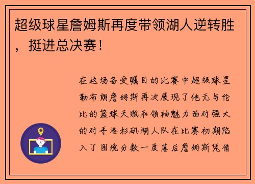 随着社会对于娱乐圈和体育圈的融合日益加深,许多明星不仅仅在他们擅长的领域内取得了成就,也在其他领域展现出了不为人知的天赋。近日,某男明星在一场篮球比赛中的精彩表现,让现场观众和网络观众都为之惊叹。虽然他并非职业篮球运动员,但凭借其精湛的球技与出色的运动天赋,他在赛场上的表现可谓是引发了广泛讨论。这一现象不仅证明了明星们在娱乐之外的多面才华,也让更多的人关注到了体育与娱乐之间的紧密联系。本文将从多个...